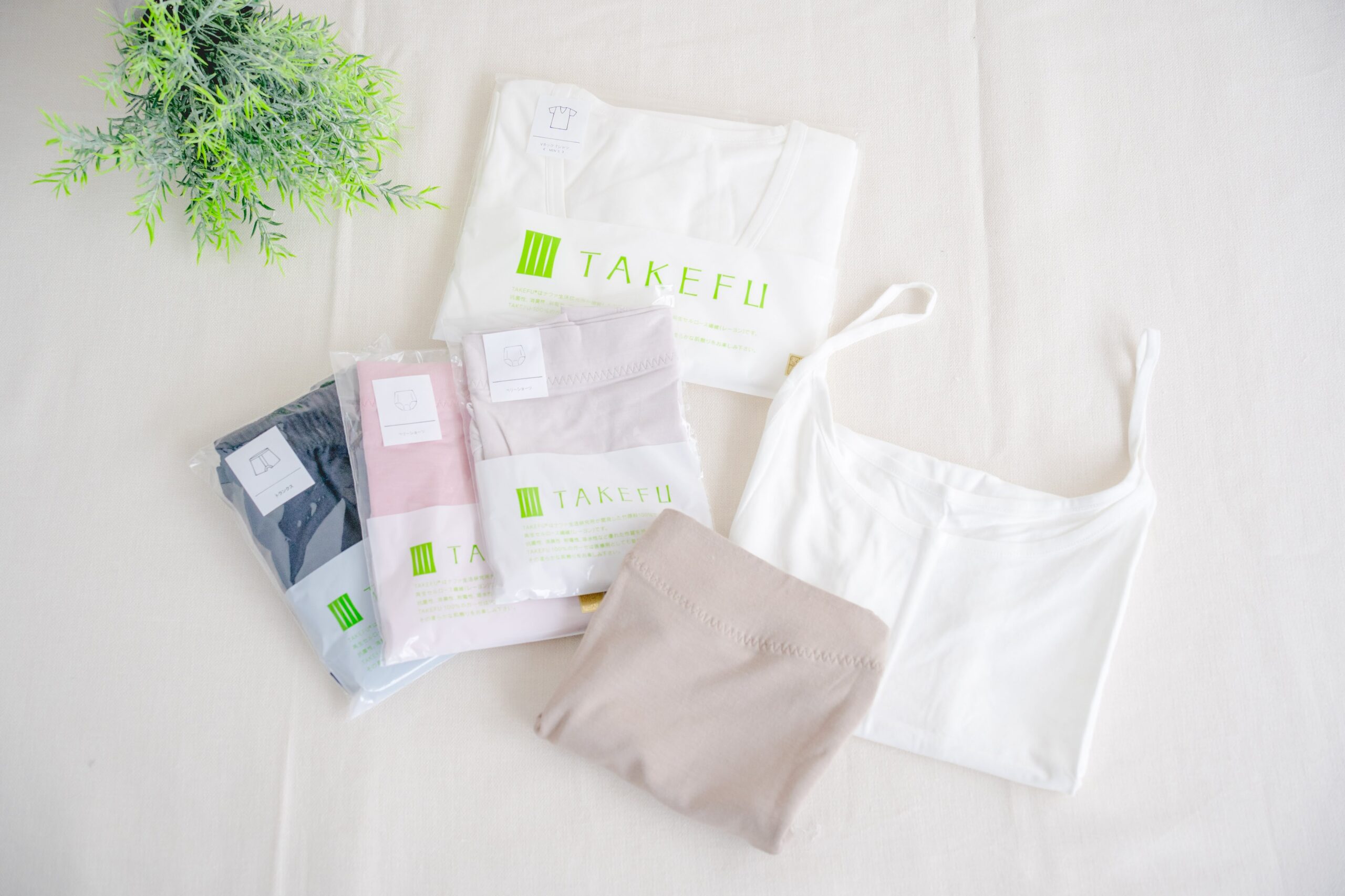 身体に直接触れるインナーは、肌にやさしいものを。竹の繊維でできたTAKEFUのインナーは、シルクのようななめらかさ。竹の消臭・抗菌作用で清潔に身につけられます。何枚も揃えたくなりますね。
