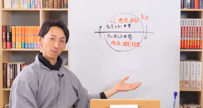 わたしたちが見ている物理世界は、そもそもの原因は目に見えない世界にあって、それがこの世にウツって作られたのがこの世界なんです。ということを、僕、大学生の時に教えてもらったんですよね