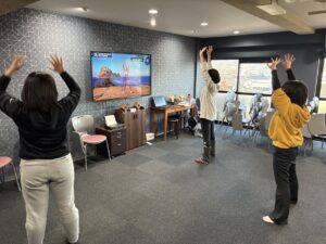 勉強が進んできた7時からは、みんなで「体操タイム」です!