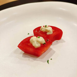 トマトのアミューズ 豆乳クリームチーズを乗せて