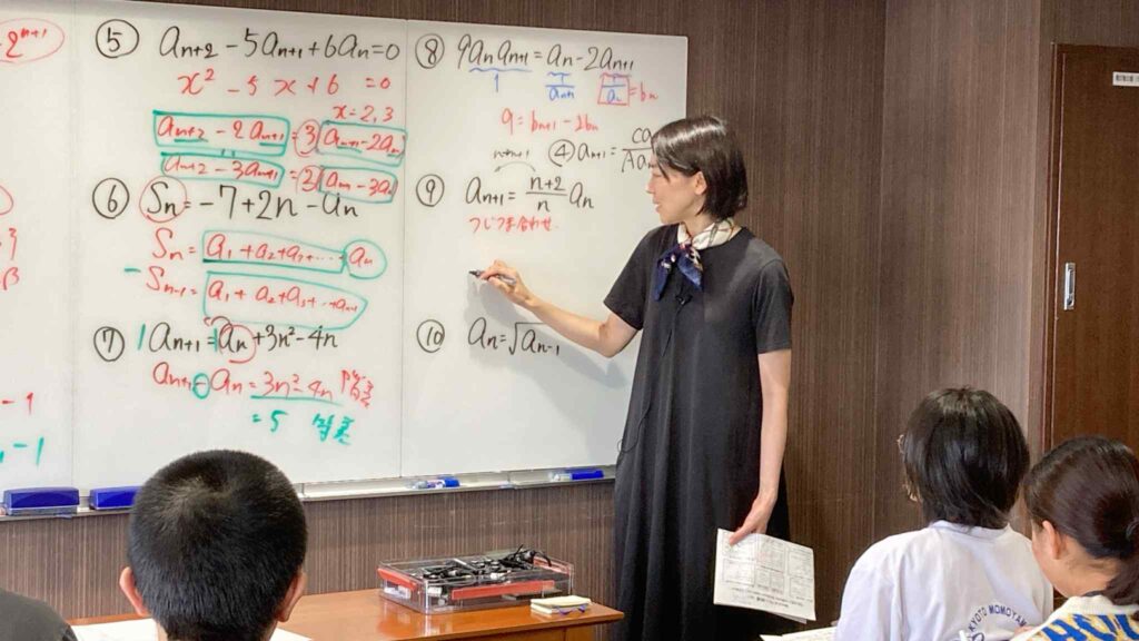 この日は、漸化式の全10パターンを一気に習得するというテーマで