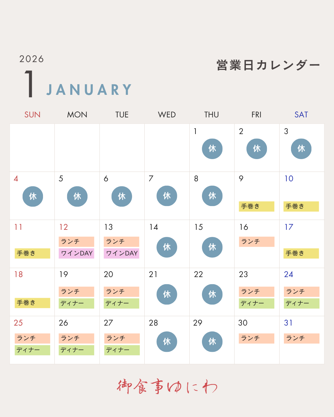 ※「ワインゆにわ」のみお電話でのご予約受付となります。