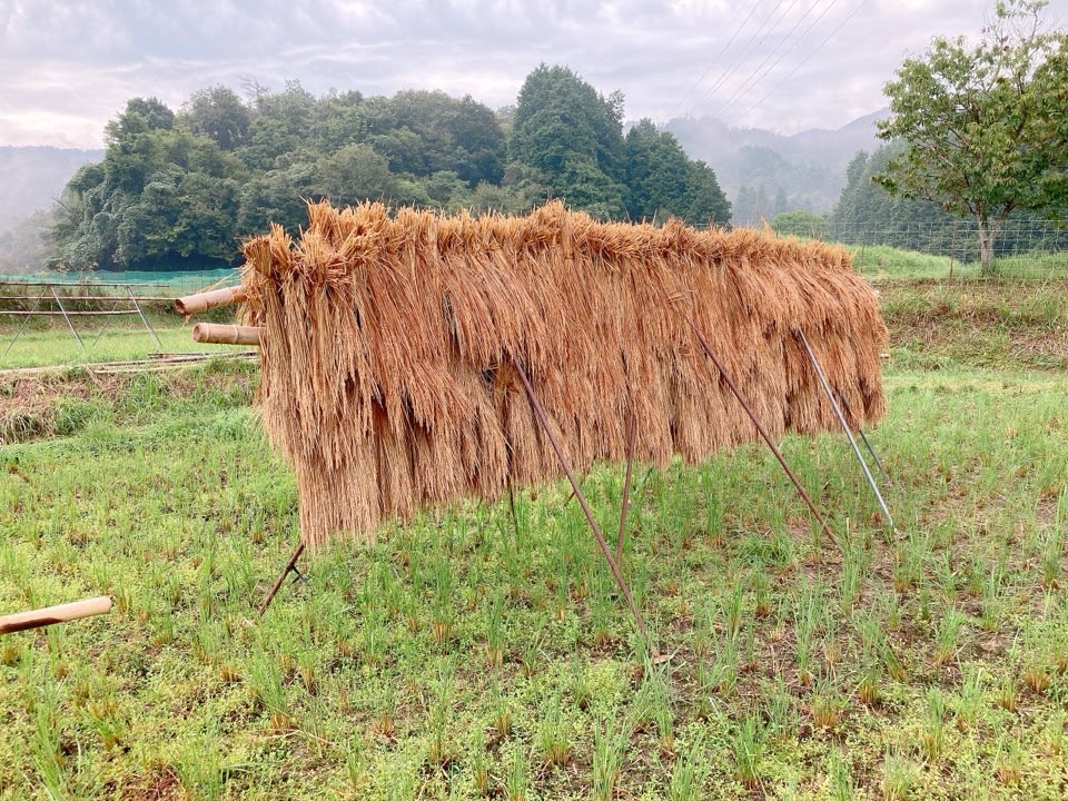 前日に雨が降ったため、干していた稲はやや湿っていましたが、また雨が降りそうな気配。