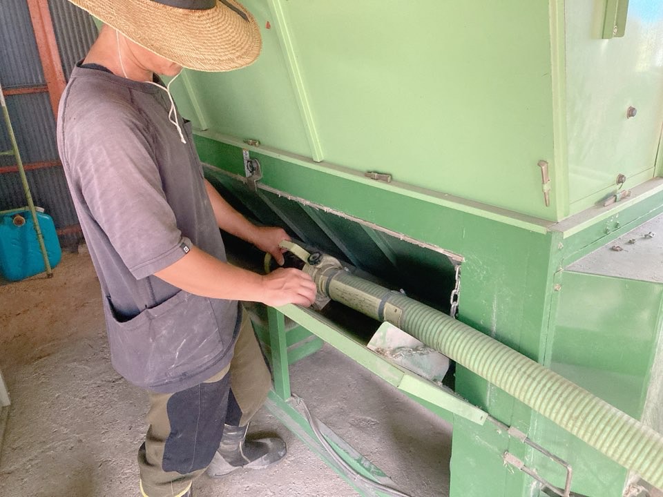 脱穀したお米は、乾燥機へ入れてさらに乾燥させます。