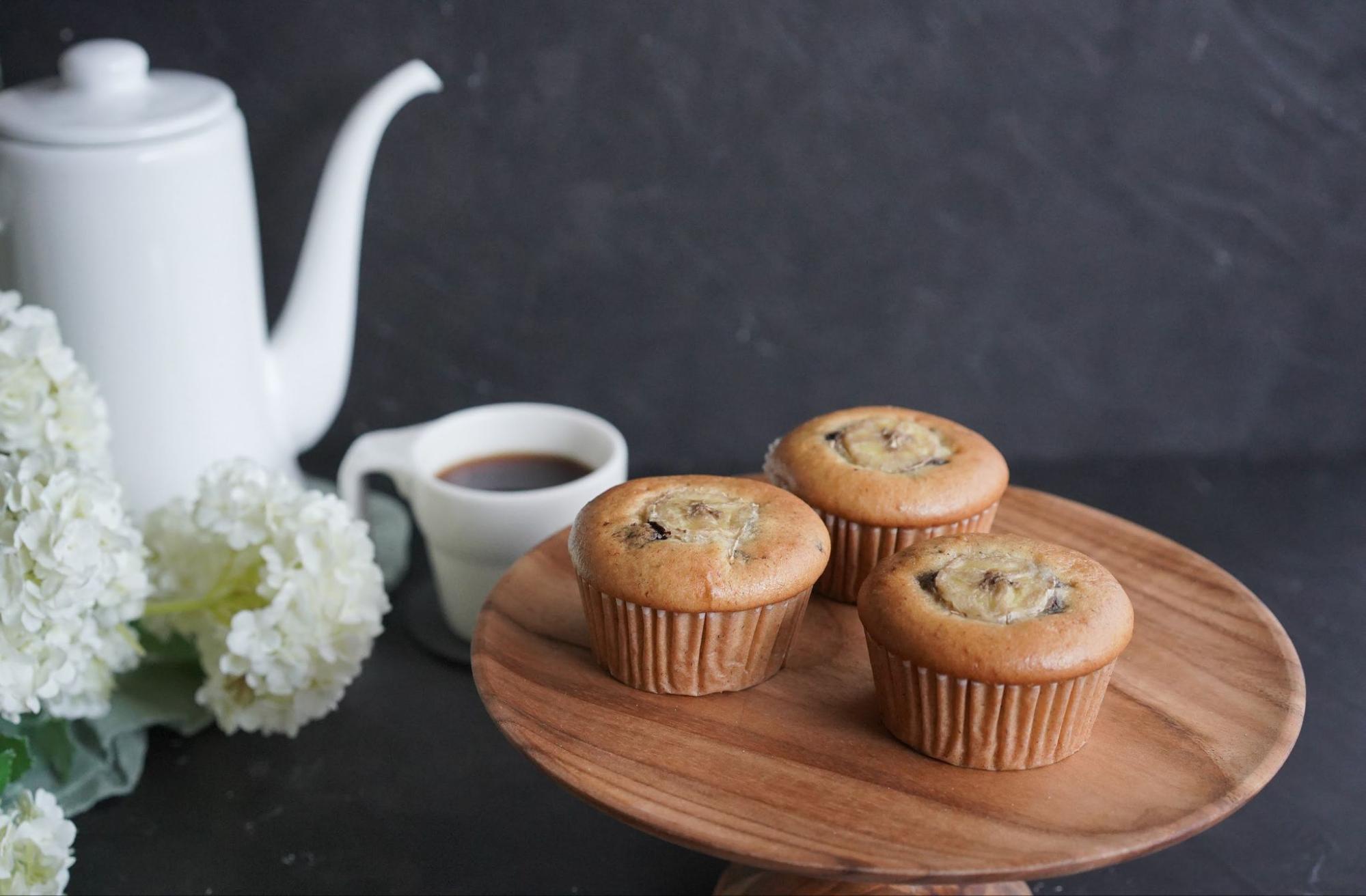 そうして完成した米粉100%のチョコバナナマフィンは、時間が経ってももっちりした食感に。