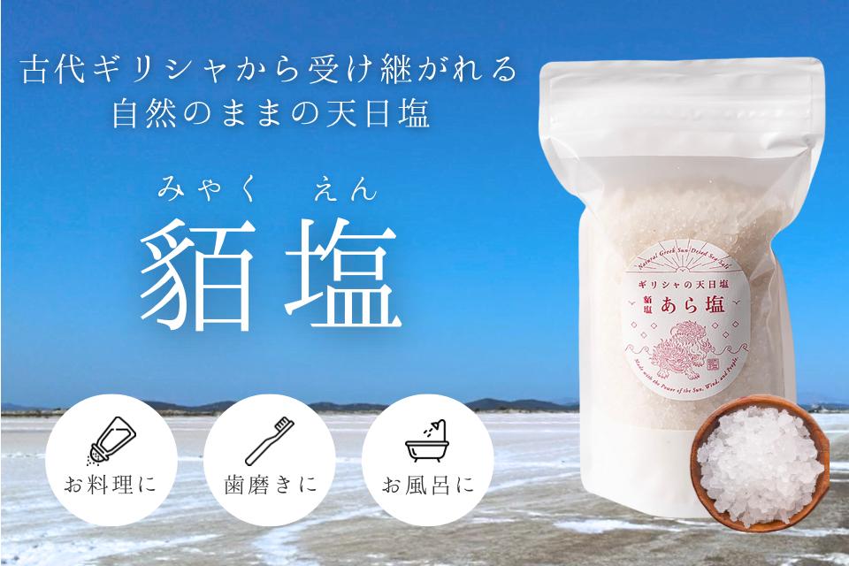 自然豊かなギリシャ・メソロンギ潟湖で生まれた「貊塩(みゃくえん)」は、太陽と風の力だけで結晶化させた、伝統的な天日塩。