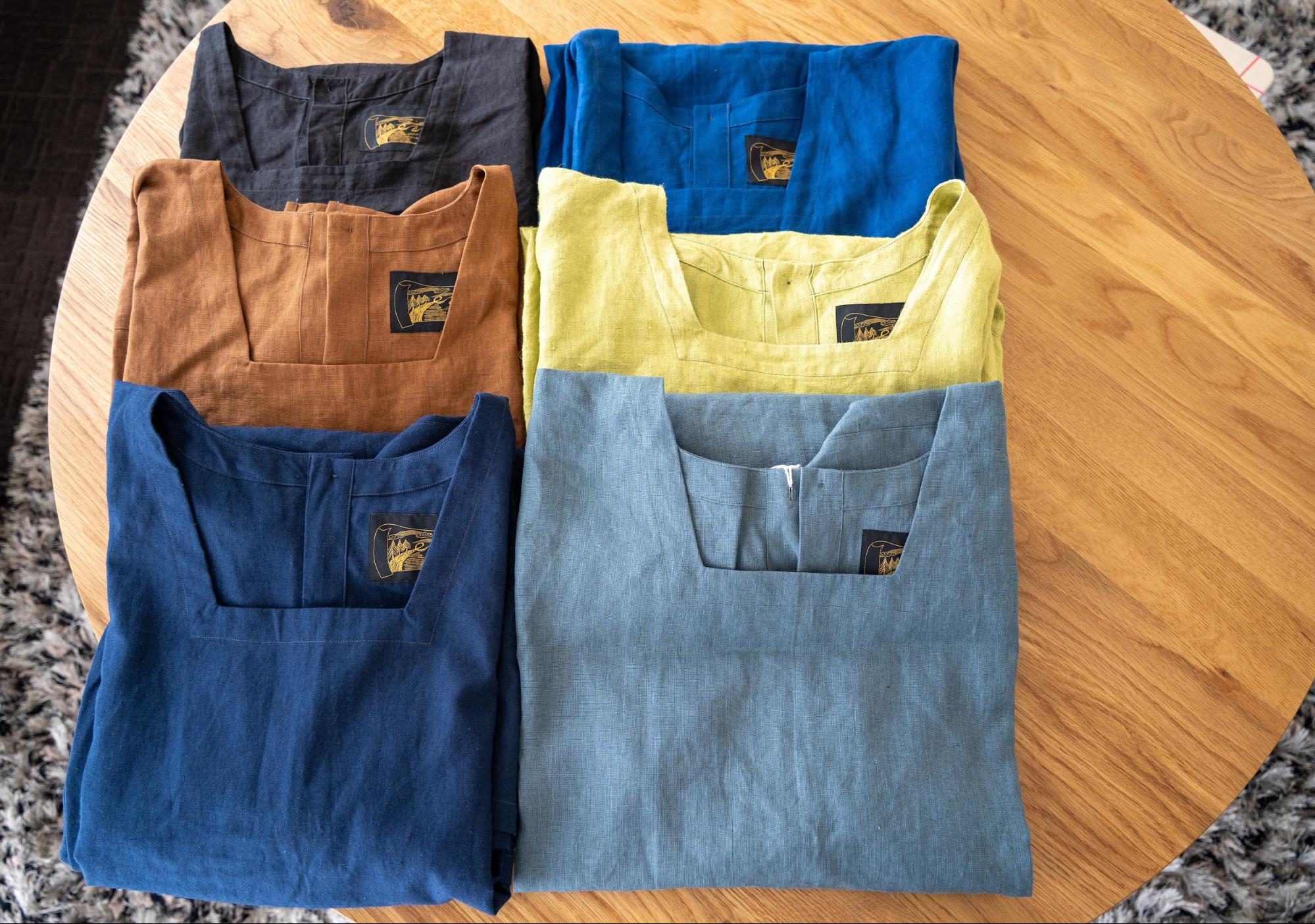 通常のリネンより糸が密に織られているため、厚みとハリがあり、型崩れしないのが特徴。