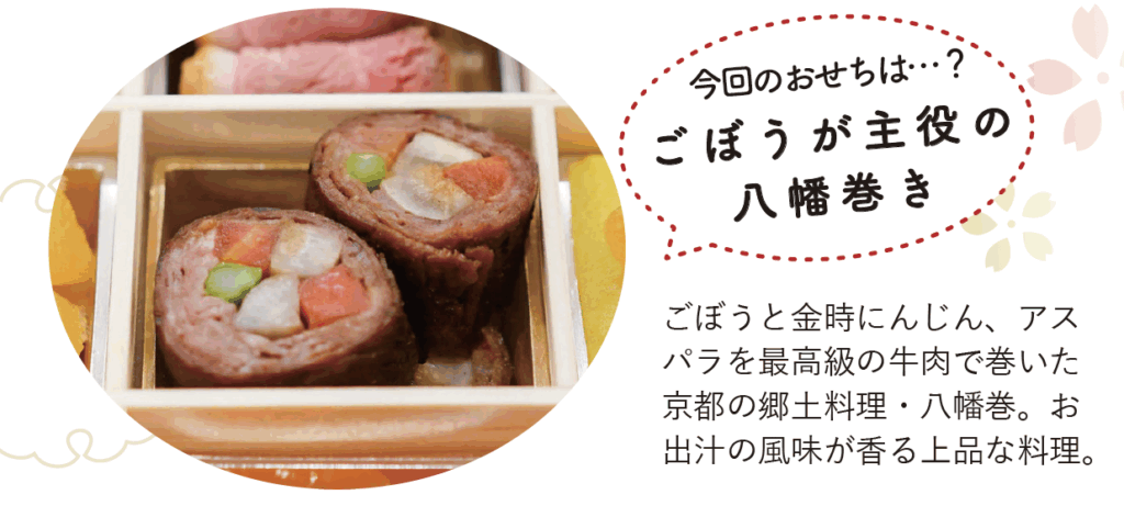 そうなんです。八幡巻を作るときは、ごぼうを細く長くカットしますが、ここには「細く長く続いていきますように」という繁栄への願いが込められています。