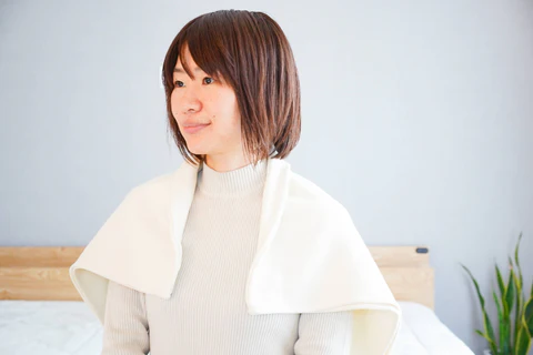 わたしは普段から「温こしくび血めぐり枕」を首元に巻いていて、発売からずっと好評で生産が追いつかないほどなのですが、とてもおすすめの商品です。