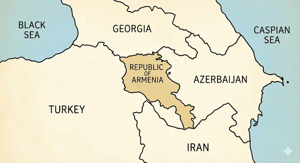 そうですね。アルメニアはカスピ海と黒海の間、コーカサス地方に位置し、中東・ヨーロッパ・アジアの文化が交錯する場所です。