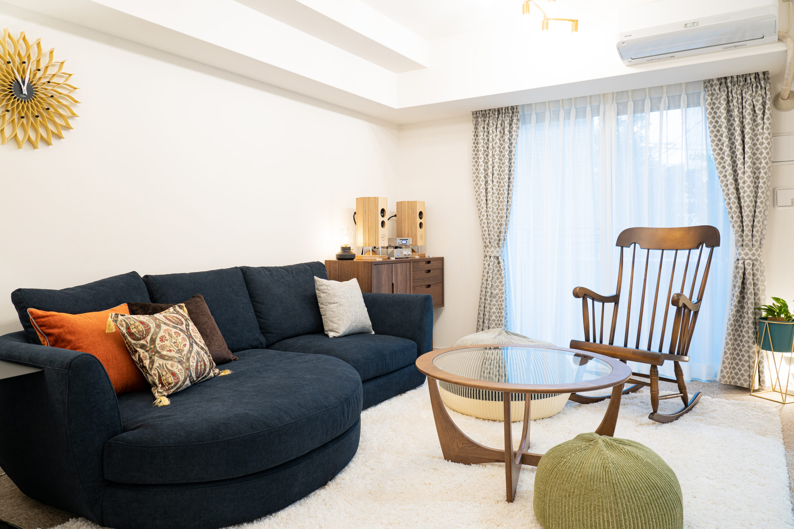「家の中心に、神棚のある憩いの場を作りたかった」と語るリビングには、思わず取り入れたくなるアイデアが詰まっています。