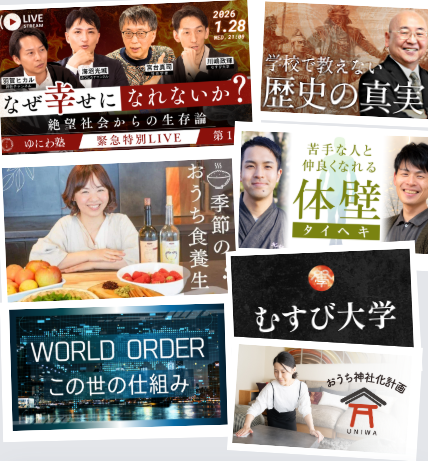 人気YouTube番組「むすび大学」「神社チャンネル」の本編をフルバージョンで公開。一般には公開できない、ディープな話がここにあります。