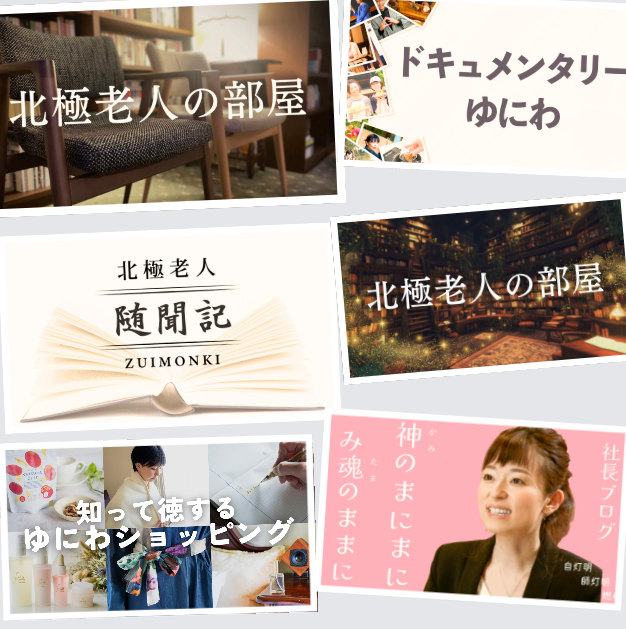 週6日配信される「ゆにわ塾ラジオ」や、スタッフが北極老人の教えをどのように実践しているのかを綴(つづ)る「随聞記(ずいもんき)」、北極老人がオススメする書籍を紹介する「北極老人の本棚」など、ゆにわ流の深い部分に触れられます。