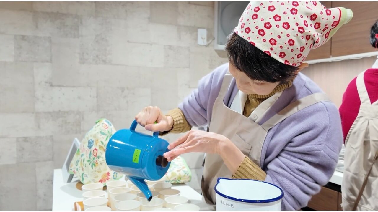 温かいおかゆやお味噌汁を用意して、みんなをお迎えします。